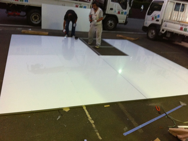 今日は明日の夜取り付けのLED看板4800×4800の制作の続き…