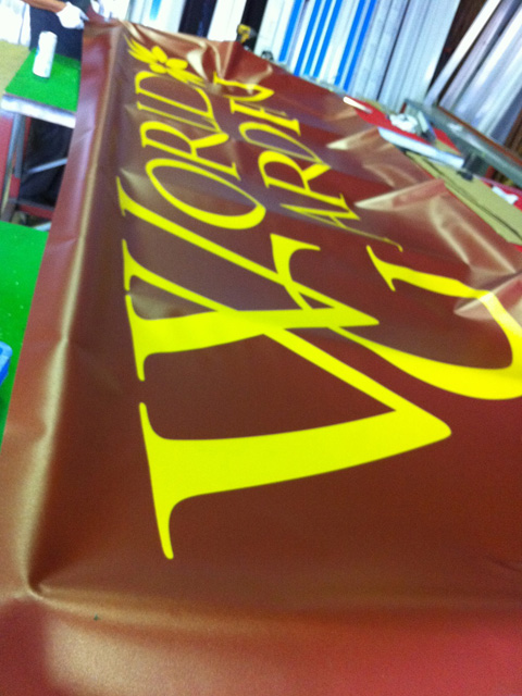 今日は、小型のFF看板も制作…シートは支給だが…印刷屋がアタリをつけてくれてなかったので貼りづらい!