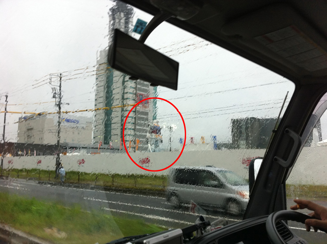 先日、最後のモーレツな残暑日に20mの看板を取付に行ってきました…この間は雨の中で静岡で取付…なぜ苛酷な日ばかりなのか…