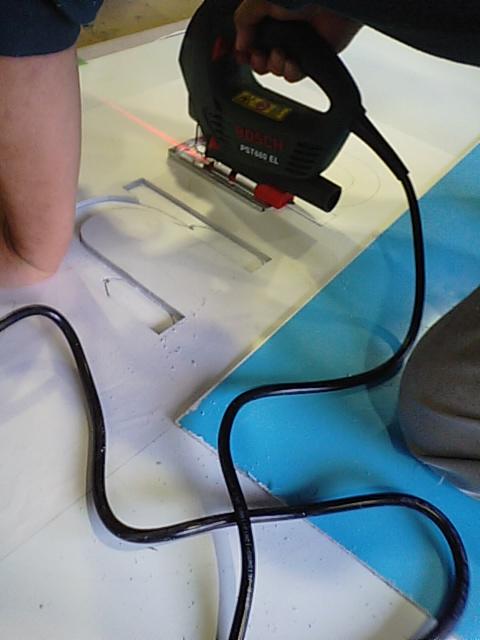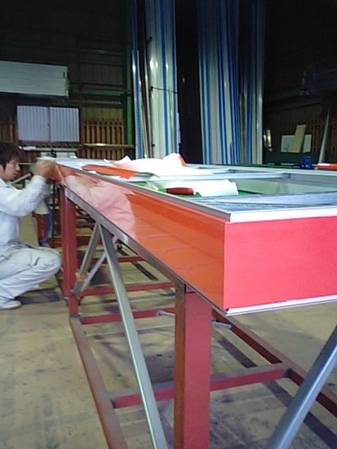今日は看板フレームにシート張りです!