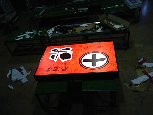今日は袖看板製作・・・ 暑い・・・ そそ 昨日 日○ の人といろいろLEDの話をした・・・ 光源の問題で・・・LED開閉式は、難しいらしいが・・・ なんとか研究してくれるそうです!^^