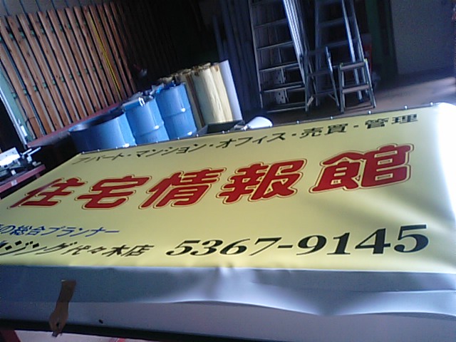 ポール看板にフレックス張り込み 暑くて大変でした・・・
